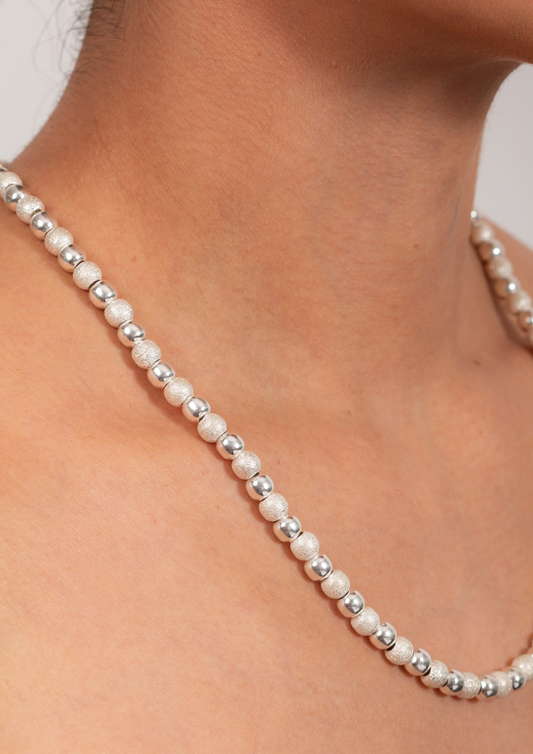 Collar de Plata 925 con Esferas Mate y Pulidas
