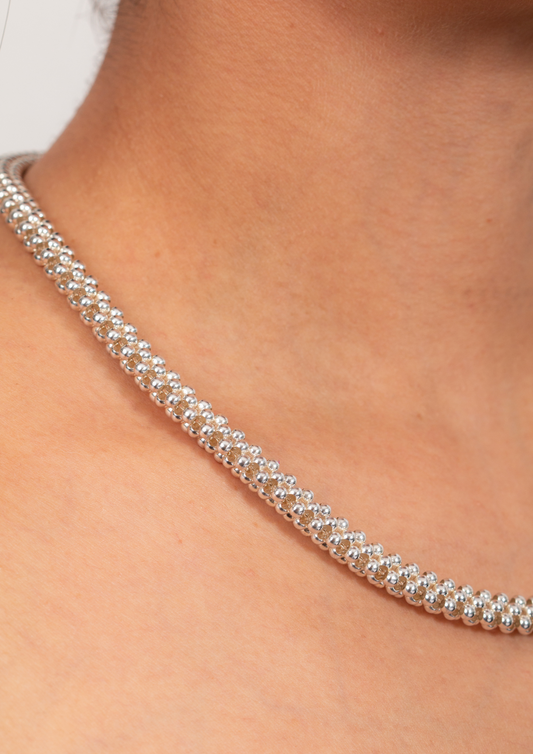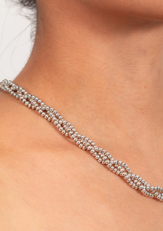 Collar de Plata 925 – Tejido de Cuentas Doble (Estilo Malla)