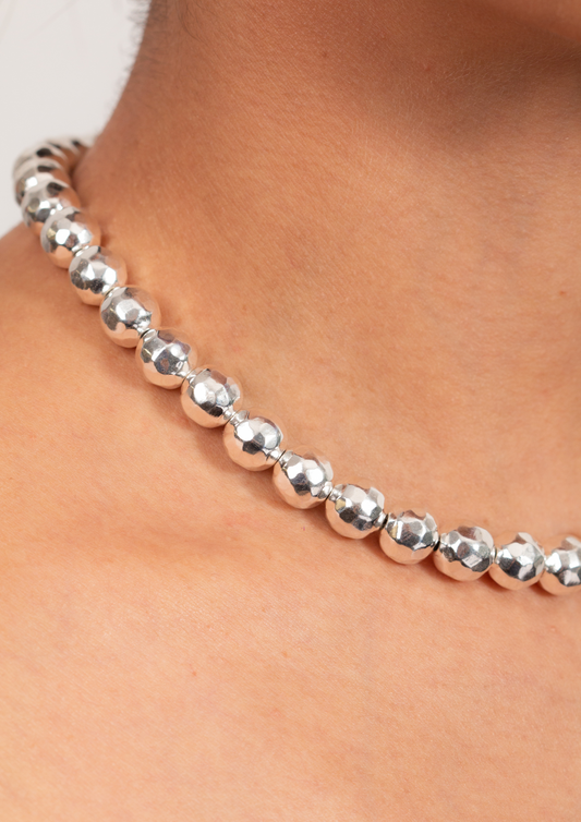 Collar de Plata 925 con Esferas Facetadas Grandes