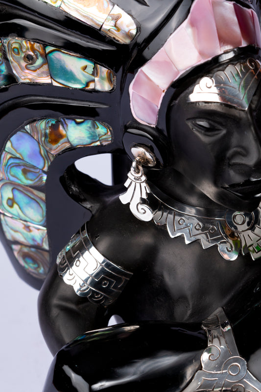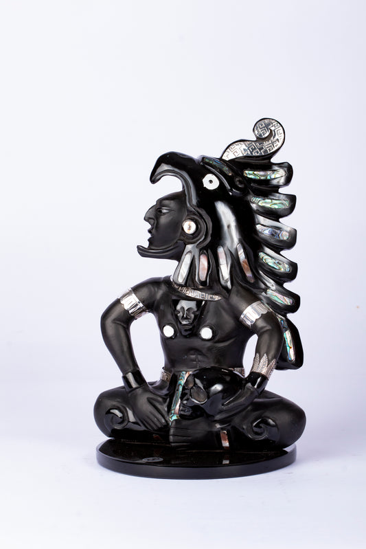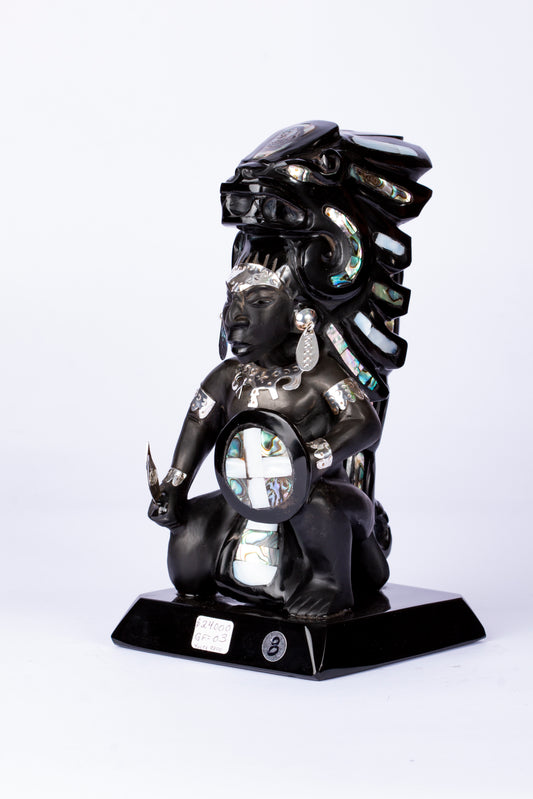 Guerrero Águila en Obsidiana con Incrustaciones de Nácar