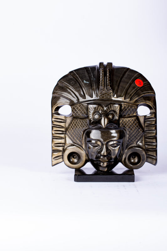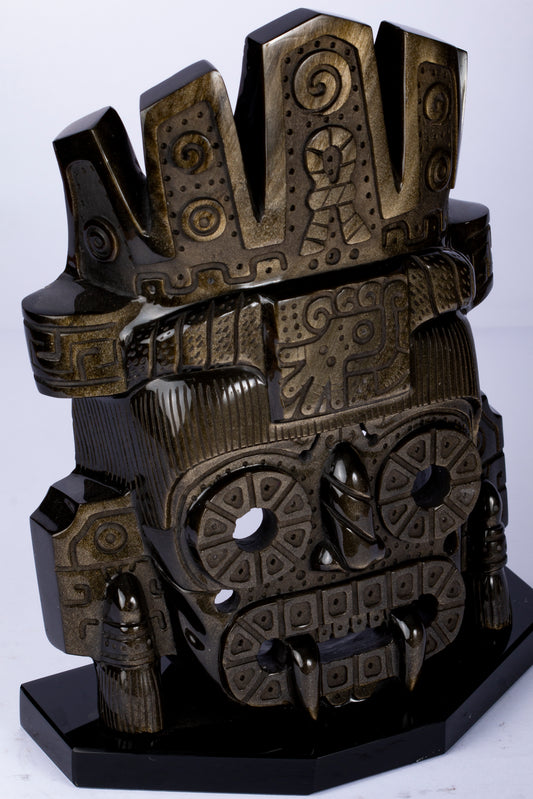 Máscara de Tezcatlipoca tallada en Obsidiana Dorada