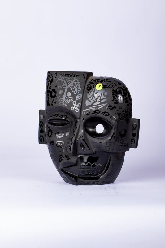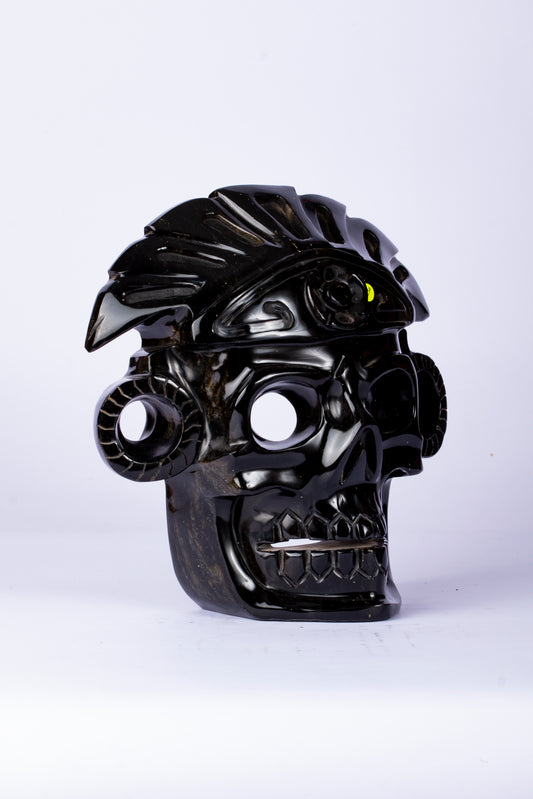 Máscara Cráneo Guerrero – Obsidiana Negra Pulida