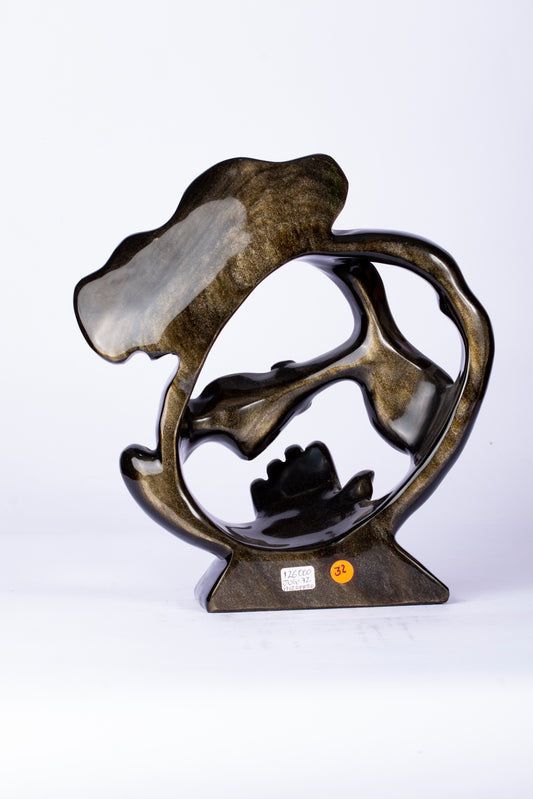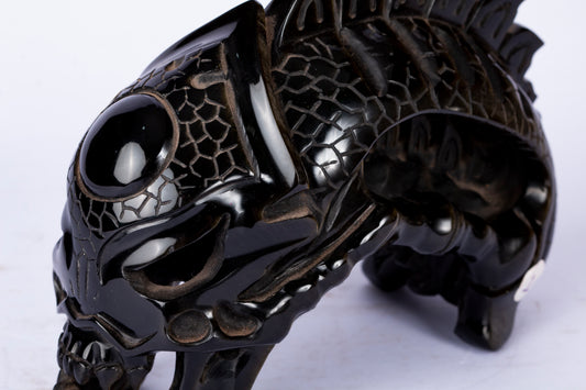 Dragón Mesoamericano – Escultura de Obsidiana Dorada