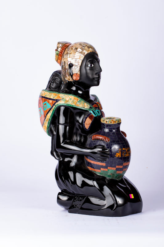 Mujer con Cántaro – Escultura en Obsidiana con Incrustaciones