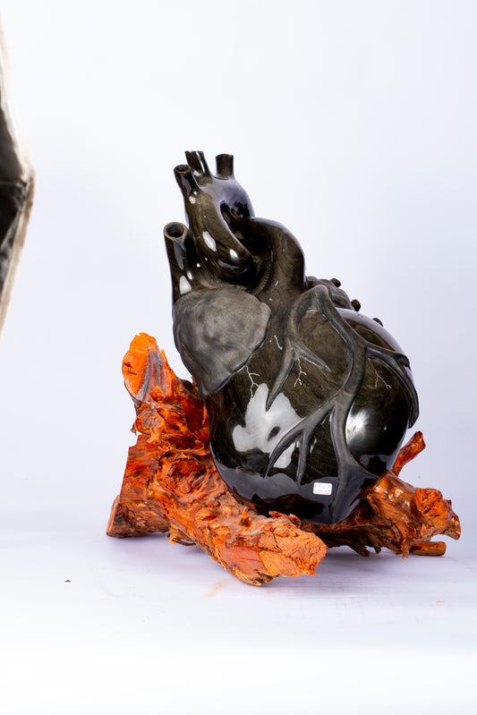 Corazón de Obsidiana – Escultura Orgánica sobre Madera
